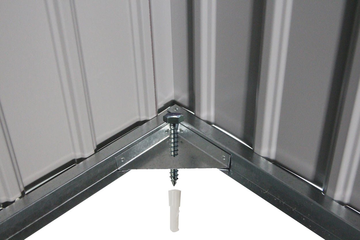 Cet abri de jardin en métal de 12.99m² de surface hors tout vous est livré avec son kit d’ancrage pour sol dur inclus !